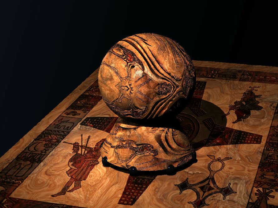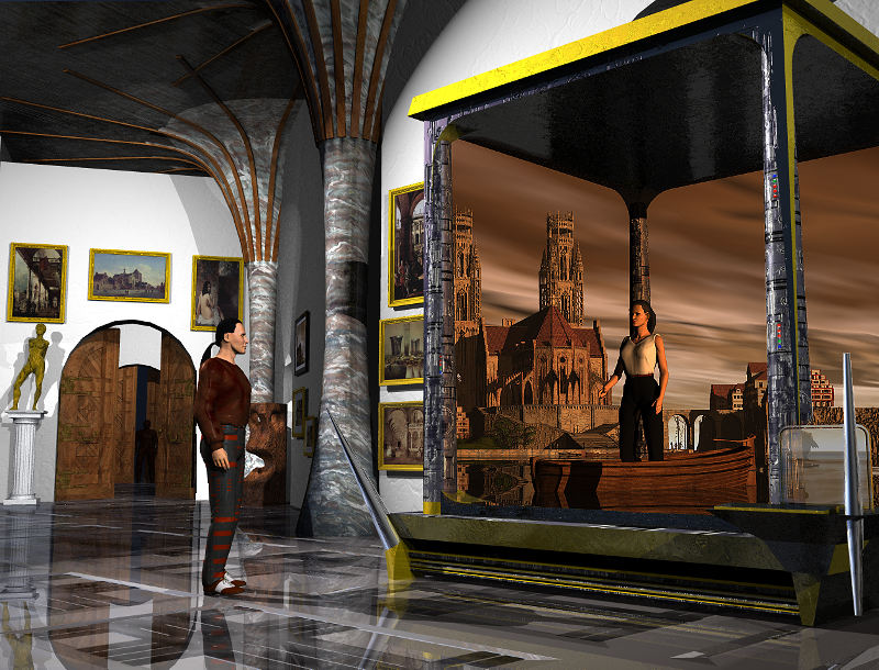 Die Skulptur (2002) In Bryce 5 erstelltes Bild. Der Blumentisch kann auf meiner Download Seite heruntergeladen werden. |