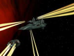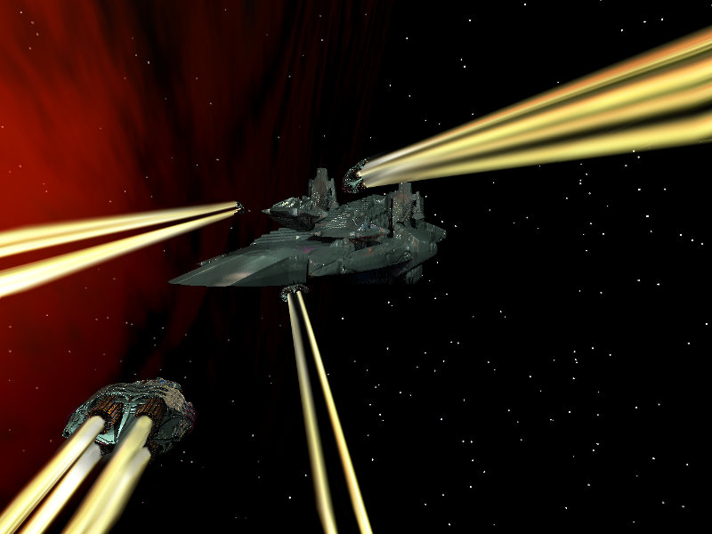 Eine Begegnung in den Weiten des Raumes. Vier meiner Raumschiffe auf dem Weg zurück zum Mutterschiff. (Oder greifen sie etwa an?)
